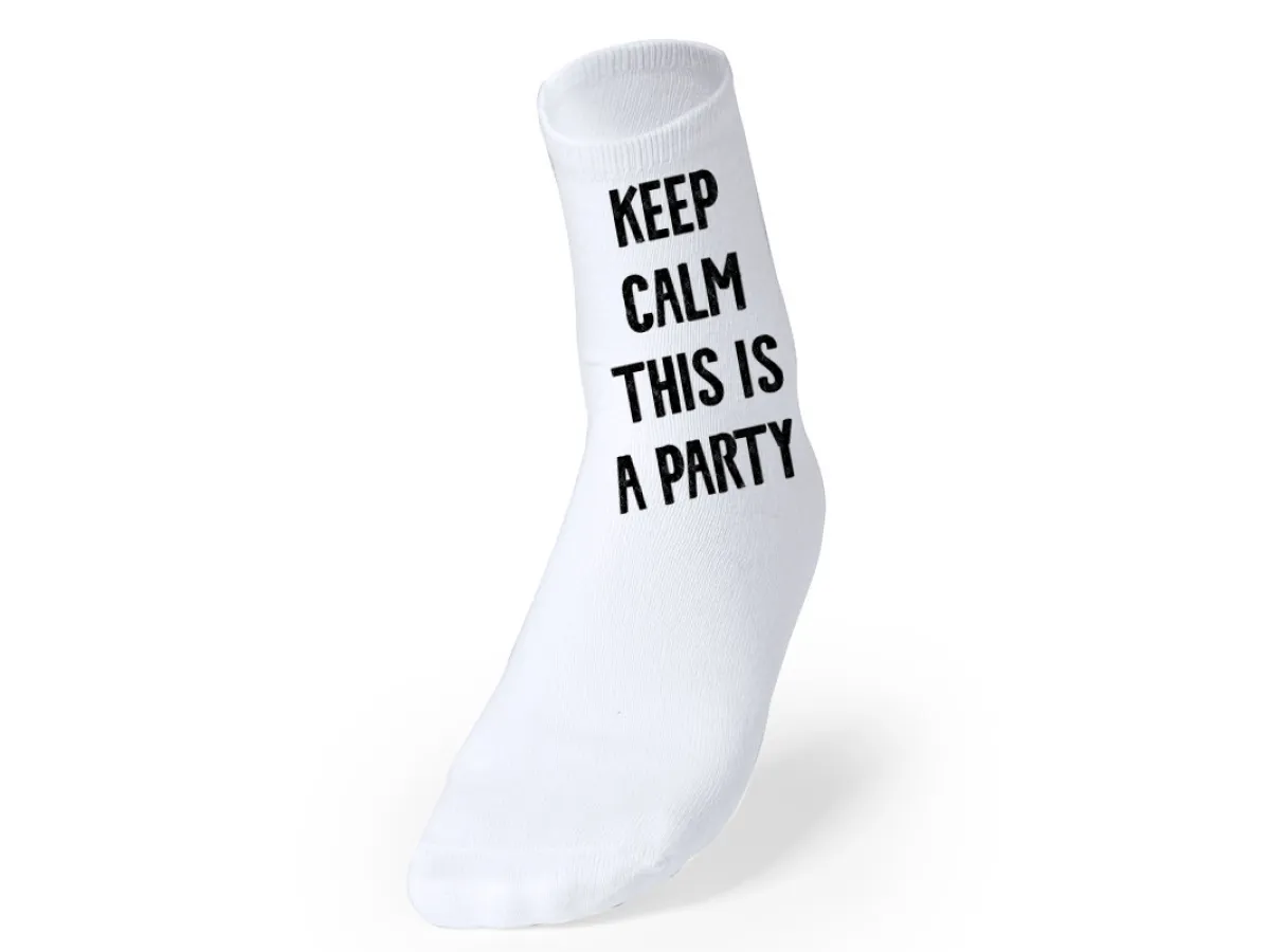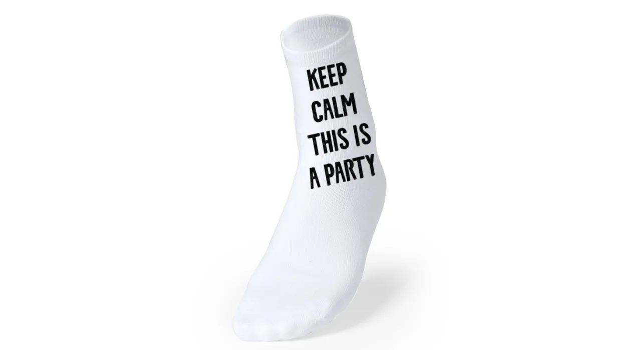 Par de calcetines fabricados en poliéster especialmente diseñados para marcar añadir una frase, la que usted quiera o seleccionar una plantilla. Disponible en varias medidas.